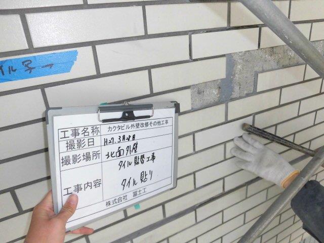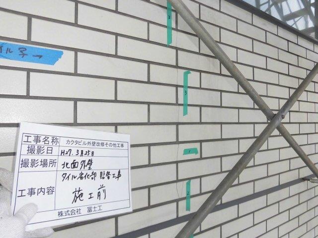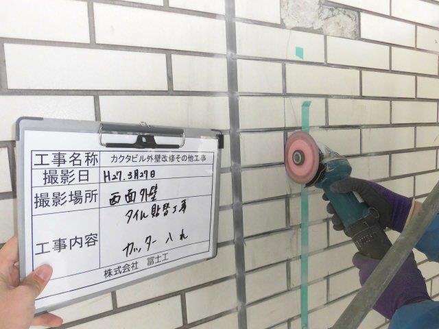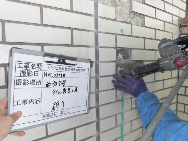 タイルは躯体コンクリートに接着材料によりマンション全面貼り付けられています。目地は目地モルタルにより埋められて概観は奇麗な外装材となっています。タイル自体は陶器や磁器質で防水性には優れた材料ですが、目地のモルタルは経年劣化により防水性能が低下して来ます。